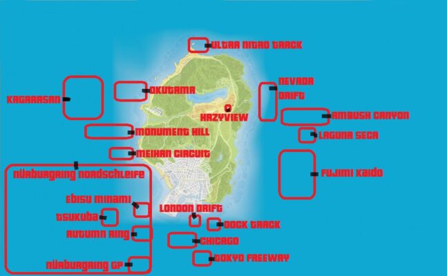 Bản mod này bao gồm 11 bản đồ đua dưới dạng tiện ích bổ sung:
